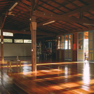 O centro de yoga Montanha Encantada conta com ambientes amplos cercado de natureza, piscina natural, cachoeira próxima, espaços de lazer e