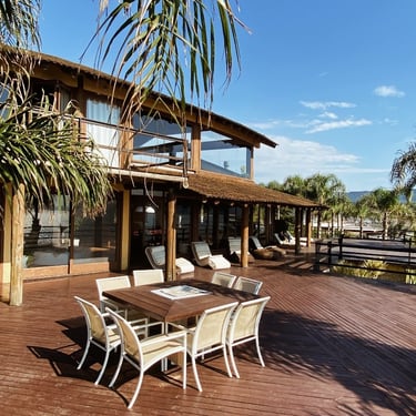 A mansão fica estrategicamente localizada à 5 min. do centro de Garopaba em local residencial,