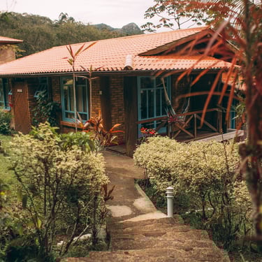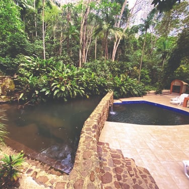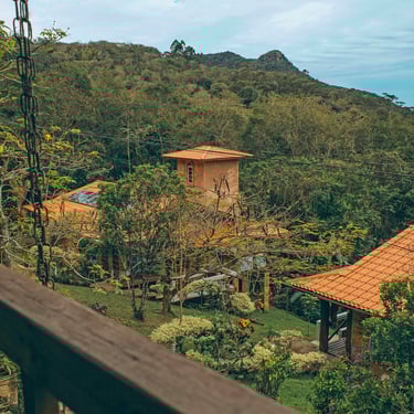 O centro de yoga Montanha Encantada conta com ambientes amplos cercado de natureza, piscina natural, cachoeira próxima, espaços de lazer e